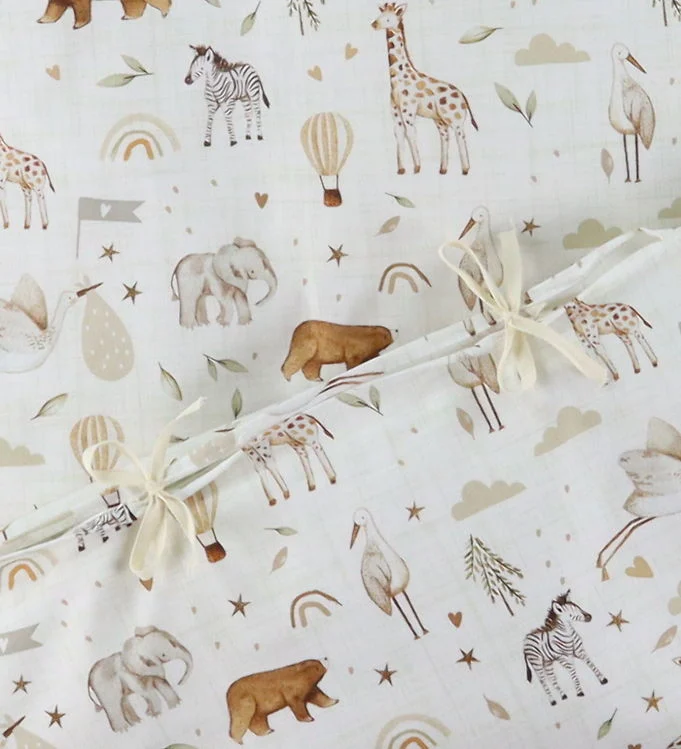 Nørgaard Madsens Sengetøj - Baby - Beige m. Striber/Zoo Dyr