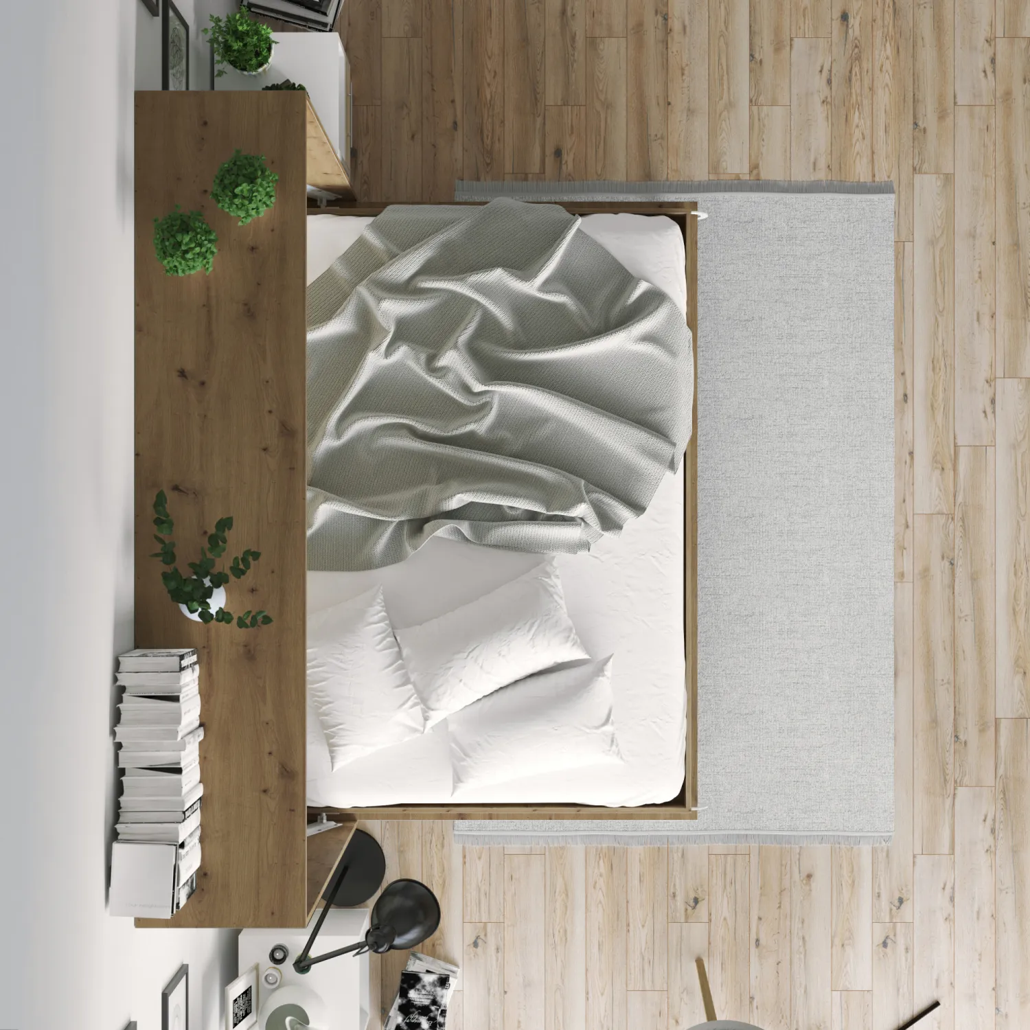 NORDIC skabsseng, lav model 140x200cm - farve Skab: Vild Eg, Front: Eg Sonoma
